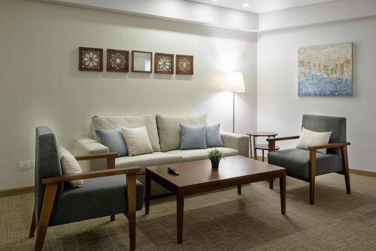 This unique and stylish space is located on the island of Zamalek, one of Cairo’s hot spots. Newly Renovated at the heart of Cairo. Fully equipped and furnished Studio space with a Private Bathroom. . 25 KM from Cairo’s International Airport/ 30-45 Mins. . 32 KM from Sphinx International Airport/ 45 Mins. . 21 KM from The Great Pyramids Of Giza/ 30-40 Mins. . 5 KM from The Downtown Cairo/ 10 Mins. . 5 KM from The Egyptian Museum/ 10 Mins . 5 KM from The Cairo Tower/ 10 Mins Step into a well-designed studio that balances comfort and functionality. With its cozy king bed and fully equipped kitchenette, this space is perfect for preparing light meals or enjoying takeout from nearby cafes. A smart TV and reliable Wi-Fi keep guests connected and entertained, creating an inviting atmosphere ideal for relaxation after a well spent day in Cairo. -Fast Wifi – Key card access -Professionally Cleaned -Fresh Towels -24/7 Support -Complimentary welcome kit -Weekly housekeeping -Comfortable Bedding -Shower amenities At Iconia, you’ll have full access to everything inside the property! Kick back and relax, knowing everything you need is right here. Beyond your apartment, dive into more fun: enjoy a refreshing swim in the pool, sip your favorite brew at 30 North Café, stock up at Deli Mart, or explore the library. You can also grab a bite at Butcher’s Burger or indulge in some retail therapy at the boutique store. Everything’s within reach, ready for you to enjoy! Need anything during your stay? We’re just a call away! You can reach our friendly front desk at Iconia, or dial our reservations number for assistance. Prefer texting? Shoot us an Airbnb message. We’re here to help you have the best experience possible, so don’t hesitate to reach out! Zamalek is a secure island located in the heart of Cairo surrounded by the River Nile. A walking distance to everything you will need.